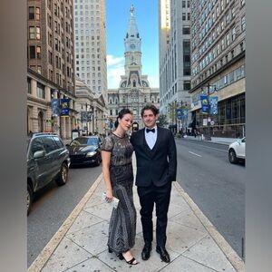 This stunning black lace evening gown is perfect for formal occasions. Its intricate design and elegant silhouette make it a standout piece.