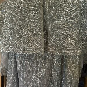 Marchesa Notte Strapless Beaded Glitter Tulle Column Gown w Caplet silver NEW S
