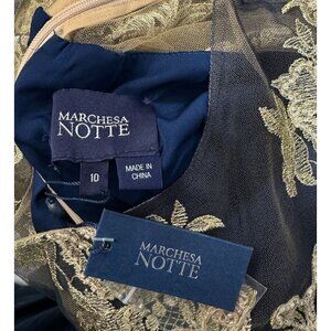 Marchesa Notte Sz 10 NWT Navy Blue Gold Beaded Embroidered Silk Formal Dress NEW