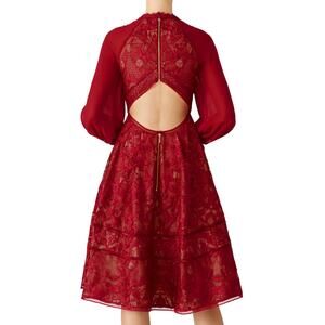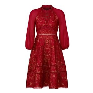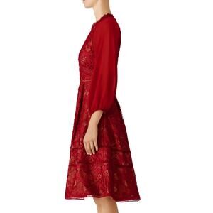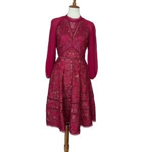 Marchesa Notte Wine Red Lace Fit Flare Midi Dress Size 10 Romantic Designer $795
