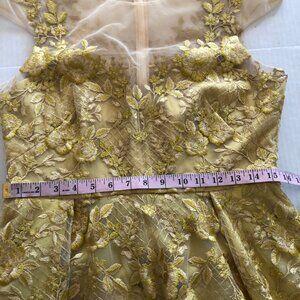 Marchesa Notte Women’s Yellow Lace Dress Size 12 High- Low Formal Gown Wedding