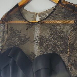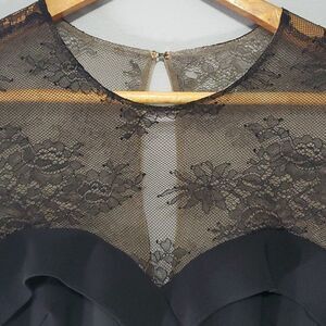 Marchesa Notte dress women's size 0 ( small ) black tan maxi peek-a-boo sheer lace floral