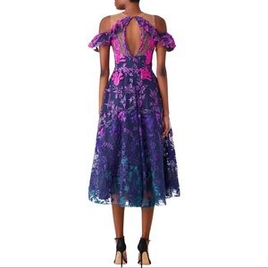 Marchesa Notte ombre floral flutter sleeve dress midi length gown