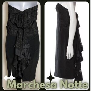 🎉Marchesa Notte,Silk Dress,Black,Ruffle Embellishment,Strapless,Stunning,Size 2