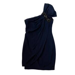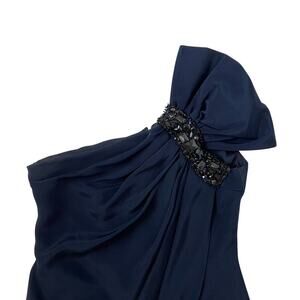 Marchesa One Shoulder Dress - Bow & Jewel Detail - Blue - Statement - Size 2