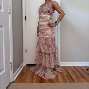 Marchesa Pearl Georgina Chapman strapless Tulle Tiered floral Gown