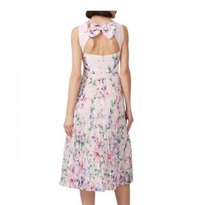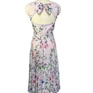 Marchesa Pink Floral Print Midi Dress Bow Embellishment | Size 12