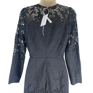 NEW Marchesa Rosa Black Linen Lace Maxi Dress Handkerchief Hem