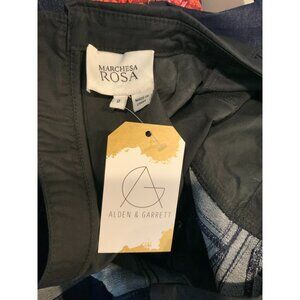 Marchesa Rosa Dark Wash Denim Layered Black Combo Collared Pencil Dress, Size 0
