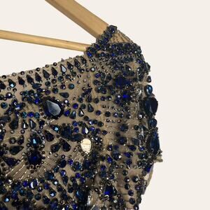 Marchesa Royal Blue Jeweled Bodice Fitted Off Shoulder Gown Size 14 New with tag. There are several missing jewels but there are replacements included. No rips, snags, or marks. Size: Tag is size 16 but there is no stretch and it seems more appropriate for a size 12-14. Approximate measurements with garment laying flat: 21” bust, 17” waist, 60” length in front. Color: Royal Blue Off the shoulder styling with short sleeves Jeweled embellished neckline upper on nude mesh Full length Fitted body Train style back hem Concealed zipper closure 📦 OFFERS WELCOME 📦 BUNDLE & SAVE MORE 📦 SAME OR NEXT DAY SHIPPING 📦 ITEMS PACKAGED WITH CARE