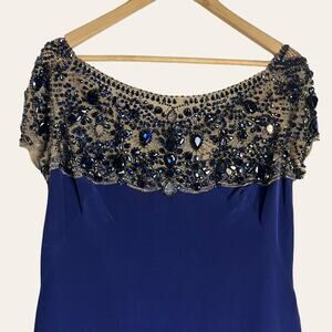 Marchesa Royal Blue Jeweled Bodice Scalloped Off Shoulder Gown Size 14
