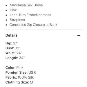 Marchesa Silk Lace Strapless Dress Pale Pink 6