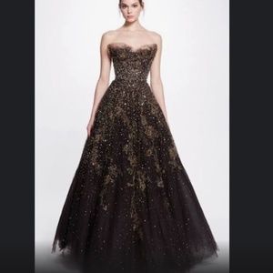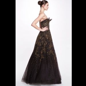 Marchesa Strapless Floral-Beaded Sequin Tulle Ballgown Chocolate US 10