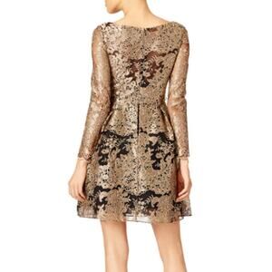 Marchesa Talulah Dress Lace Mini Black Gold 12