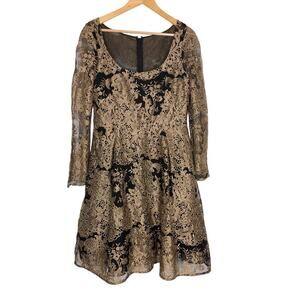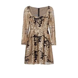 Marchesa Notte Talulah Dress Long sleeves Gold Lace Mini
