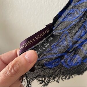Marchesa Voyage Floral Scarf Inspired by designer Georgina Chapman's own scarf collection, this soft printed scarf details an all-over floral pattern that encircles the Marchesa logo. A beautiful and vibrant accent, it instantly wraps a perfect flash of luxe to any look.