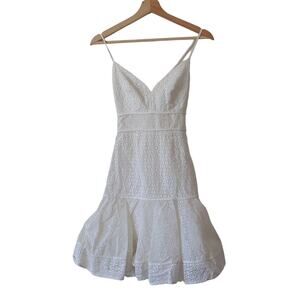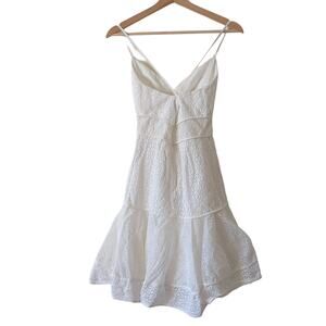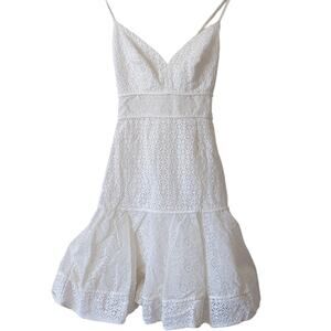 Marchesa Voyage Eyelet Crochet Dress Womens 0 White Sweetheart Neck Sundress