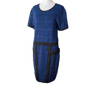 Marchesa Voyage XL Sheath Dress Short Sleeve Zippers Blue Black Bodycon
