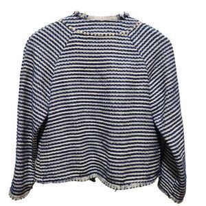 Marchesa Voyage open front cardigan jacket blue white stripe beaded pocket sz 4