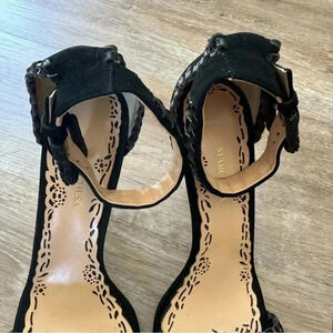 Marchesa Women's Black Sierra High Heels Leather Suede Whipstitch EU 39.5 US 8.5