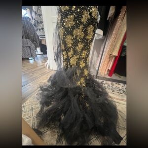 Marchesa black and gold beaded formal gown with tulle train and detail s14 NWT