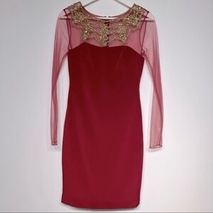 Marchesa notte dress vintage burgundy embellished cocktail evening size 0
