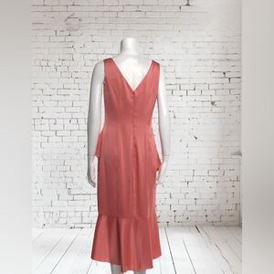 Marchesa Notte Coral Sleeveless Ruffle Floral appliqué Dress.