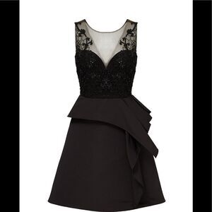 Marchesa Notte Black Embroidered Cocktail Dress