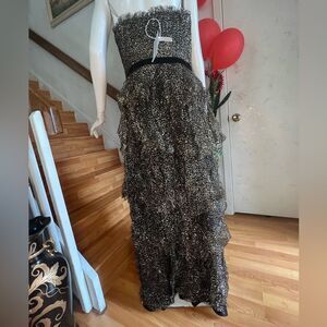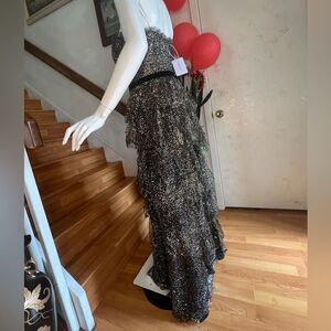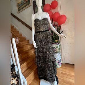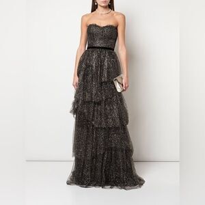 Marchesa Notte Ruffled Tiered Strapless Gown
