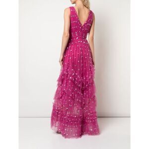 Marchesa Notte sequin dot tulle ruffle dress size US 8 Pink