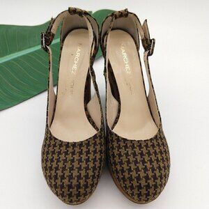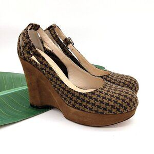 Marchez Vous Yeardley Retro Wedge Heels Size 8.5 Houndstooth Academia Pin Up