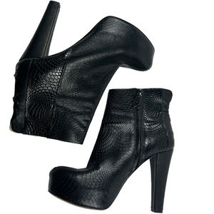 Marchez Vouz by Yeardley Black Leather Platform Heels Booties Size 8.5