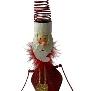 Add a touch of holiday cheer with this charming red and gold Santa ornament. Perfect for enhancing your festive decor.