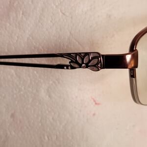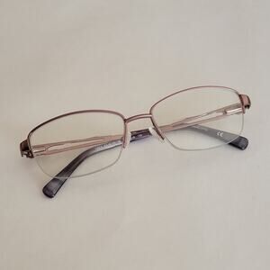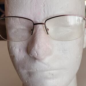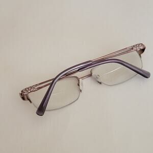 Marchon Eyeglass Frames Tres Jolie 171 601 Blush 54x16x135. Metal Half Rim frame, floral decor. Pre-owned, good shape. You need your own lenses