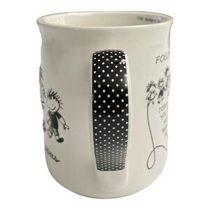 The black and white design adds a classic touch to any kitchen or office. The mug is microwave safe for convenient use.