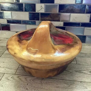 Marcia E600 USA Yellow/ Brown Mid Century Pottery bowl with Lid