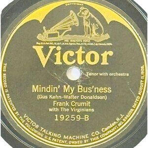 Vintage 78 RPM record featuring Marcia Freer's "Linger Awhile" and Frank Crumit's "Mindin' My Bus'ness," released by Victor. A perfect addition for collectors and enthusiasts of early 20th-century music.