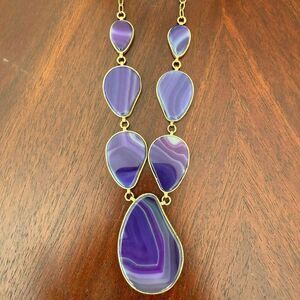 TAGS: marcia moran necklace, purple agate jewelry, agate statement necklace, organic stone bib necklace, semi-precious stone jewelry, agate necklace, boho glam necklace, artisan luxe jewelry