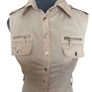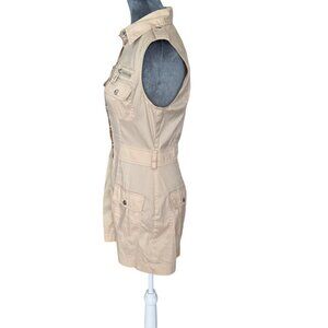 Marciano Beige Sleeveless Button-Up Utility Dress With Pockets Size S