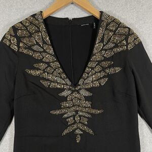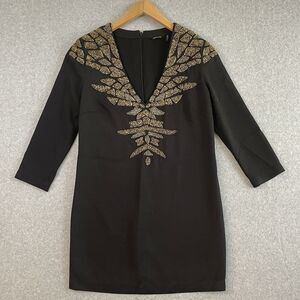 Marciano Black Mini Dress Size 2 Sparkly Cocktail Gold Hand Embellishment Tunic