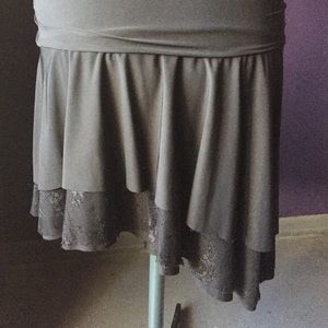 Turn heads in this black Marciano dress. It's strapless with a lace halter that wraps around the neck. The skirt is asymmetrical. Hand wash. Runs a little small and is best on a slimmer woman.