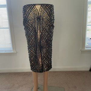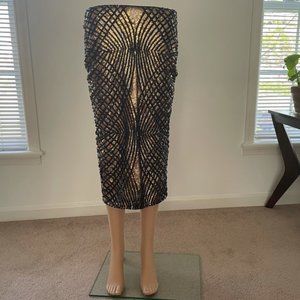 Elegant black and gold skirt. Features intricate geometric pattern. Perfect for evening wear.