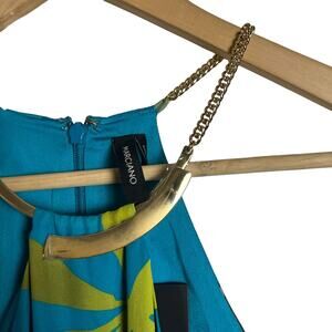 Marciano Blue Tropical Floral Print Halter Gold Chain Asymmetric Top Size Small