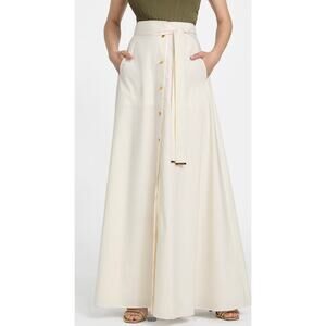 Marciano By Guess Pat Belted Maxi Skirt Off-White Long Gold Buttons US 2 IT 38