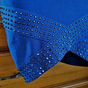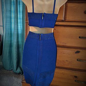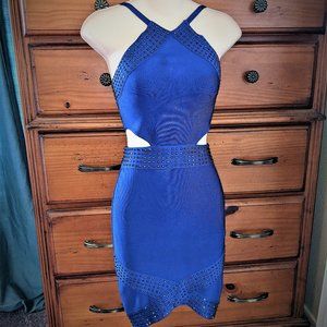 Bluish-purple cutout bandage bodycon dress with stud embellishments.