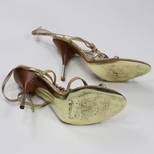 Marciano Gold Embelleshed Open Toe Stilleto Heels Sandals - Sz.9