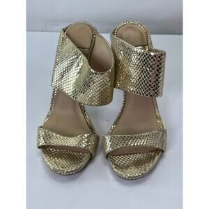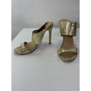 Step out in style with these beautiful gold open-toe heels by Marciano! These pumps are perfect for adding a touch of elegance to any outfit. Whether you're dressing up for a night out or adding some sparkle to your everyday look, these heels are sure to impress.