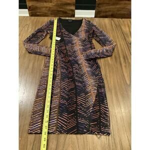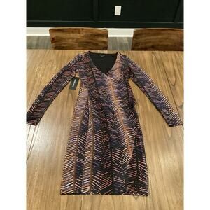 Marciano by Guess Between The Lines Long Sleeve V Neck Lined Midi Dress S NWT