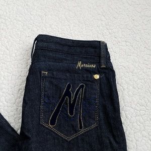 Blue Marciano jeans in great condition. Cotton/lycra fabric. Women's size 28.