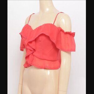 Marciano Juliet Off-Shoulder Bustier Top XS NWT Hibiscus Red Ruffles Mini Length